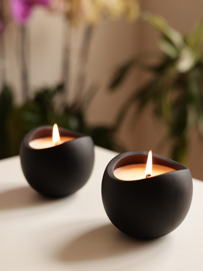 Kεραμικό μαύρο δοχείο με φυτικό κερί σόγιας.